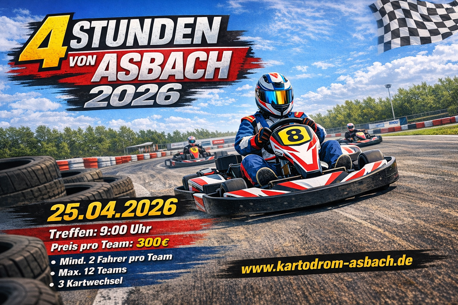 Es erwartet euch ein 4 Stunden Teamrennen im Kartodrom Asbach.